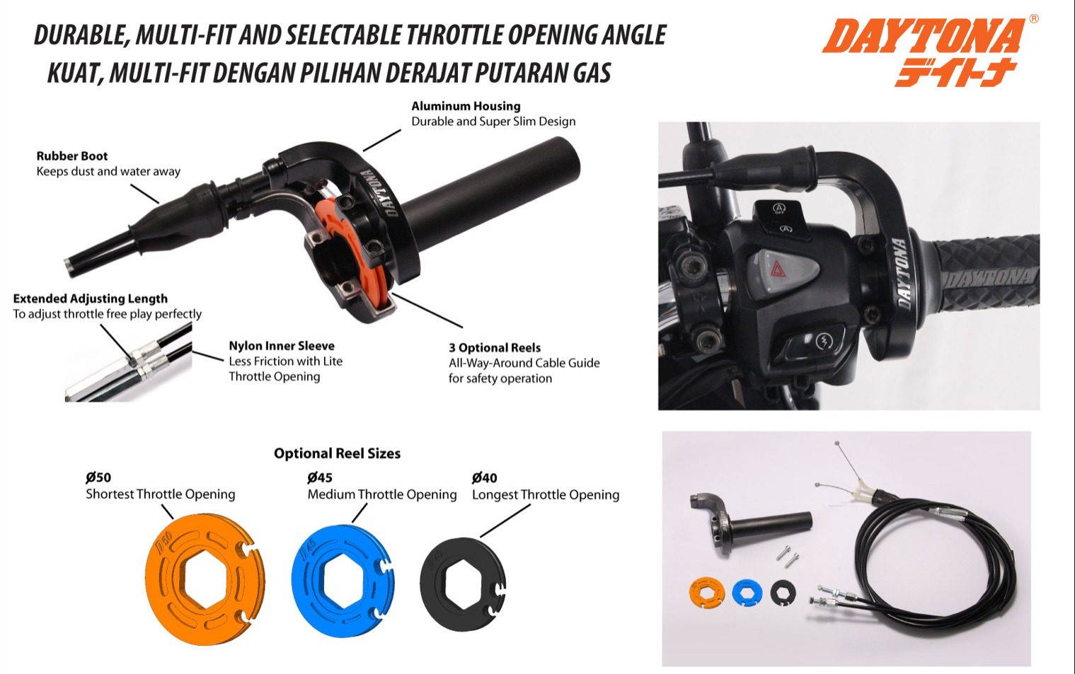DURABLE, MULTI-FIT AND SELECTABLE THROTTLE OPENING ANGLE